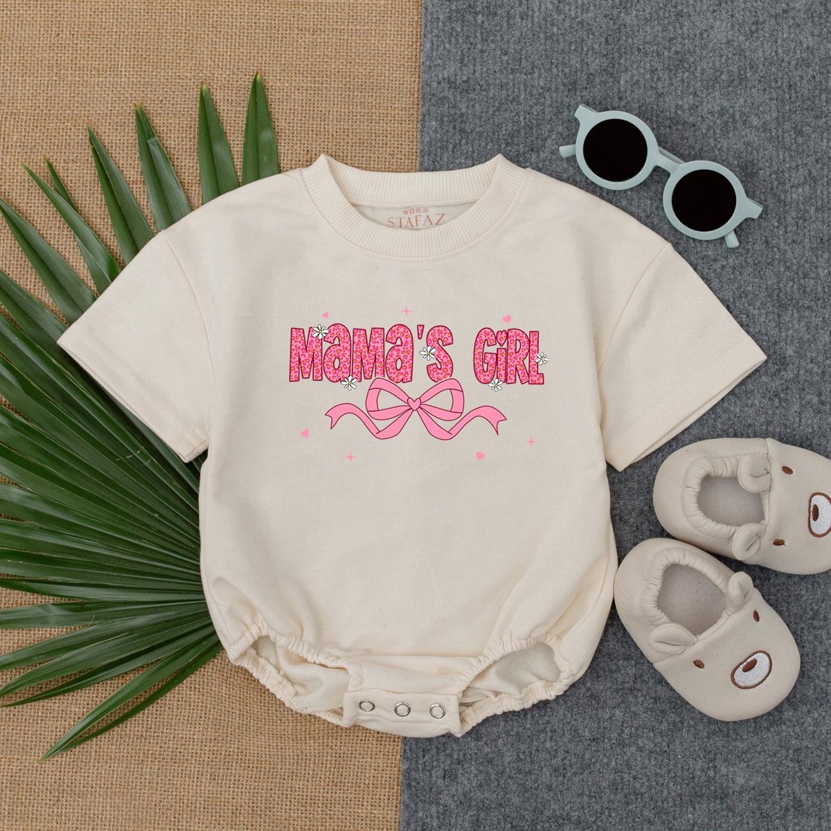 Mama’s Girl Pink Bubble Romper Baby Baggy T shirt Romper Mama’s Little Bestie Tee Fathers Day Gift 189