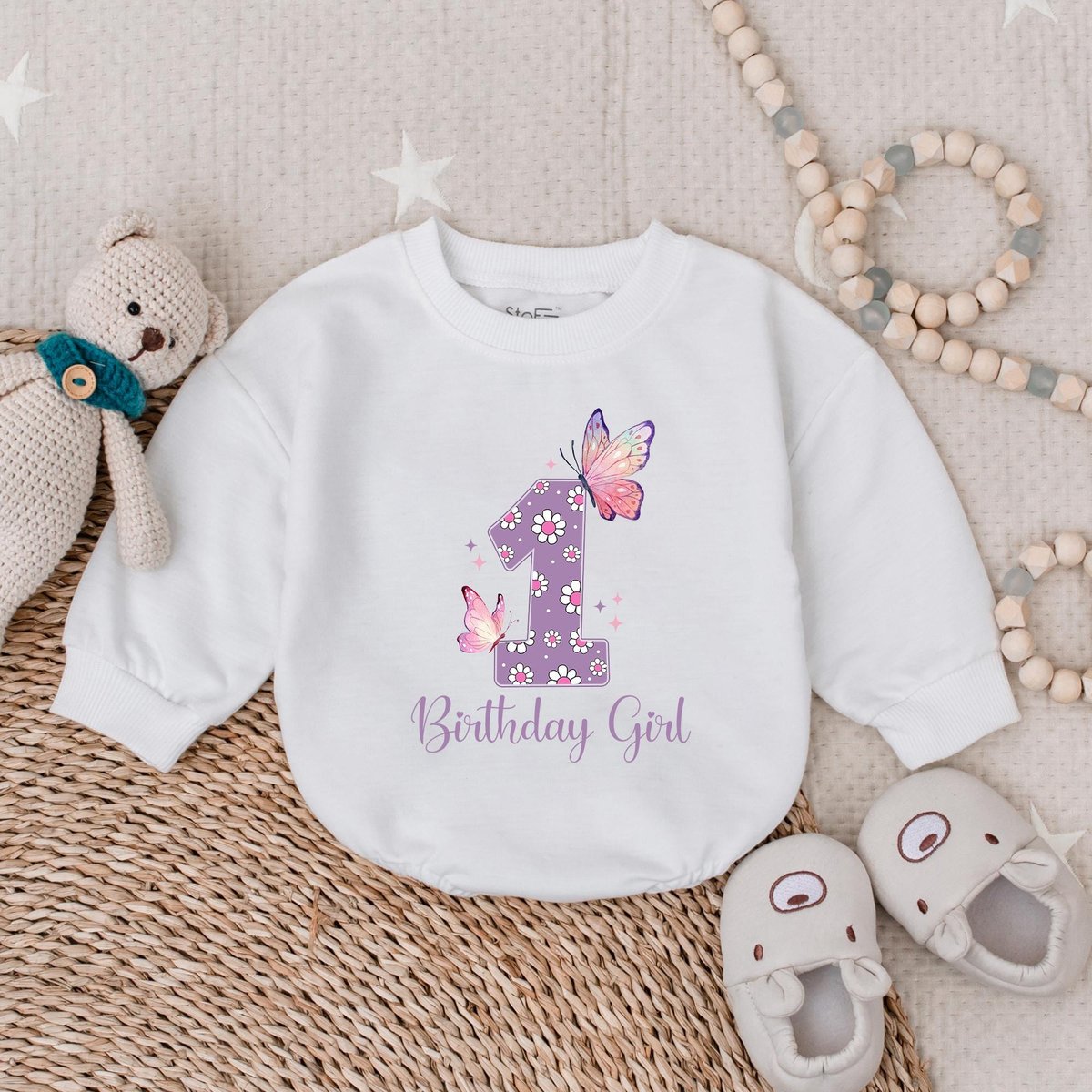 Birthday Girl Butterfly Bubble Romper Baby Bodysuit Birthday Girl Outfit Baby Girl Birthday Outfit B