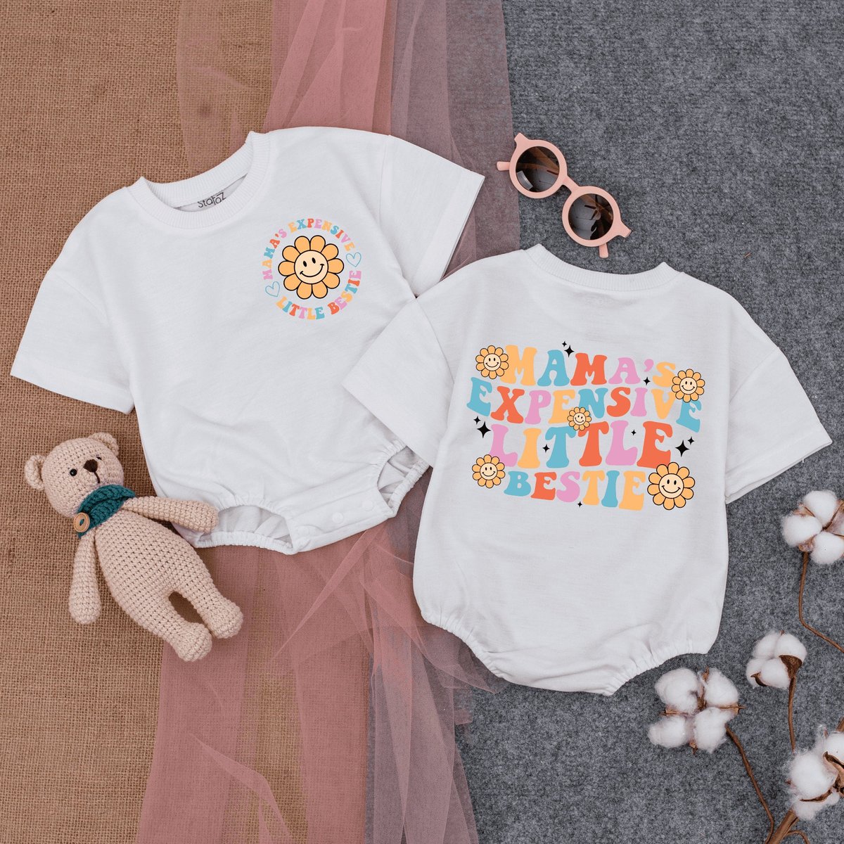 Mama’s Expensive Little Bestie Bodysuit Cute Retro Romper Mom’s Bestie Oversized Romper Mama’s Be 167