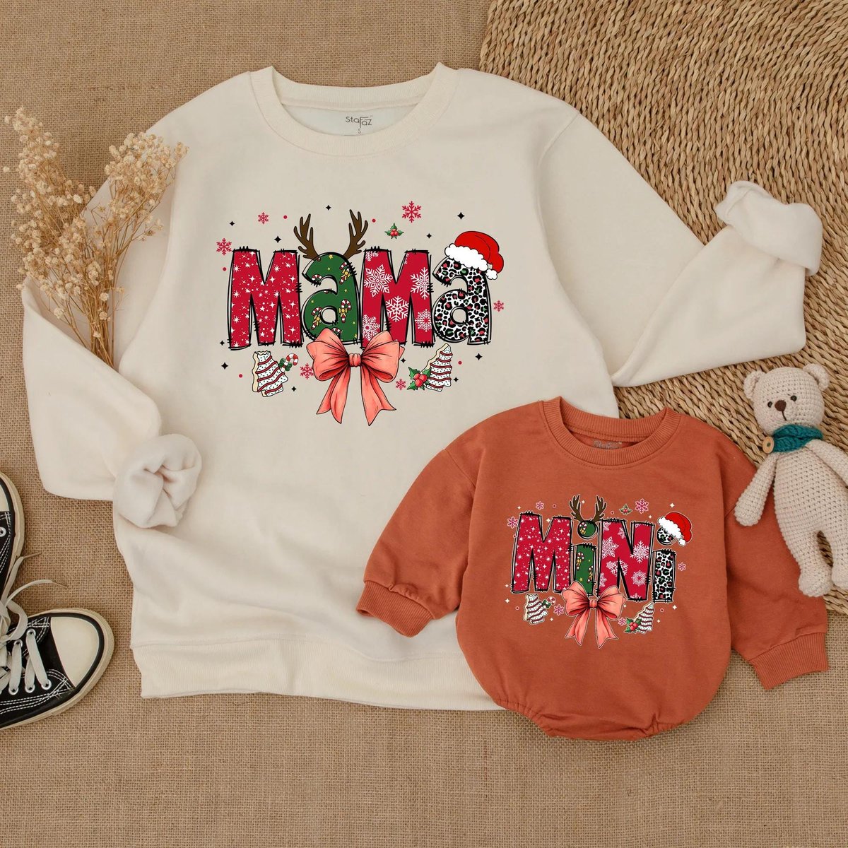 Merry Mama and Mini Sweatshirt Mommy and Me Matching Christmas Sweaters Mother Daughter Shirts Toddl 436