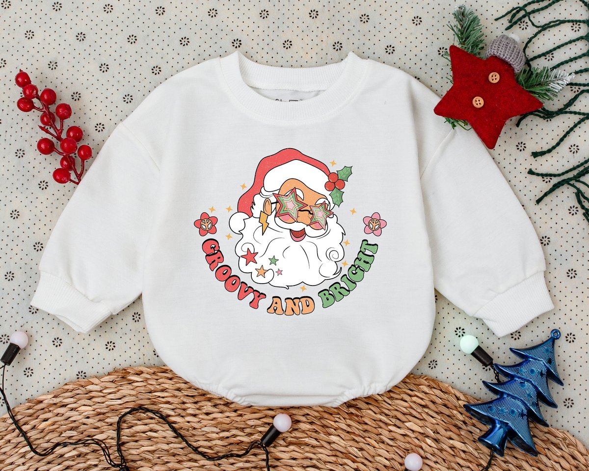 Vintage Santa Romper Groovy and Bright First Christmas Clothes Toddler Sweatshirt Baby Shower Gift B