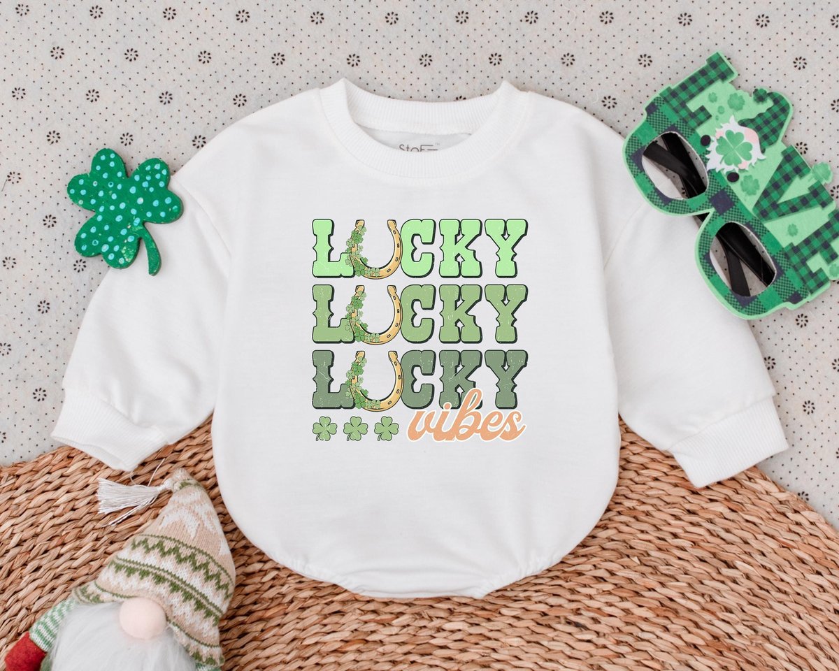 Western Lucky Vibes Romper My First St Patrick’s Day Outfits Clover Patrick Bodysuit Baby Boys Girl