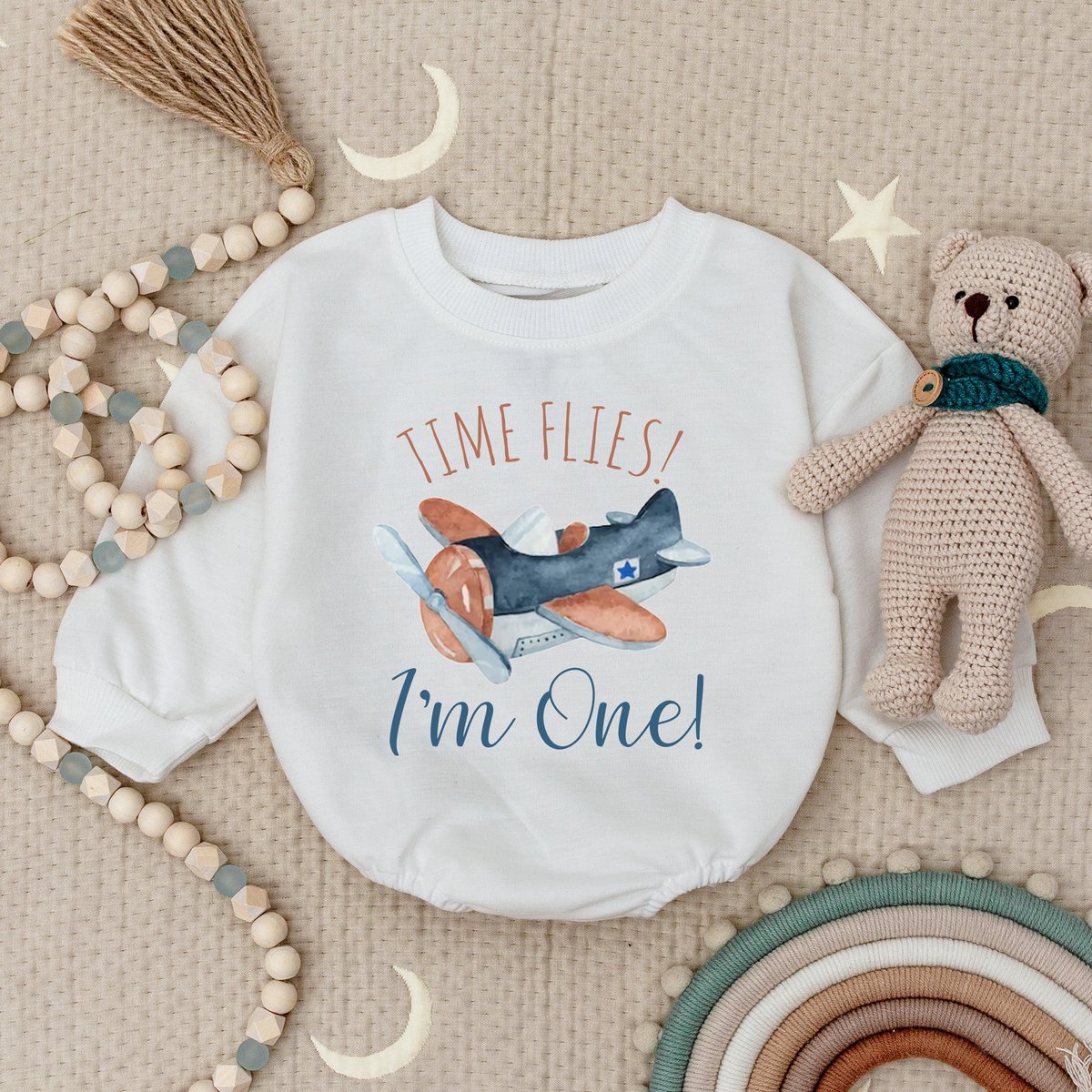 Time Flies I’m One Airplane Birthday Baby Romper Airplane Theme Bubble Romper Airplane Birthday Bab