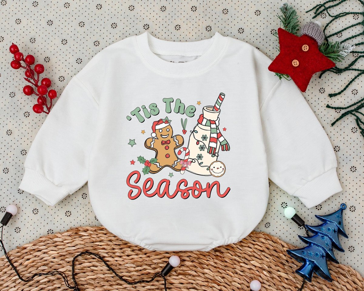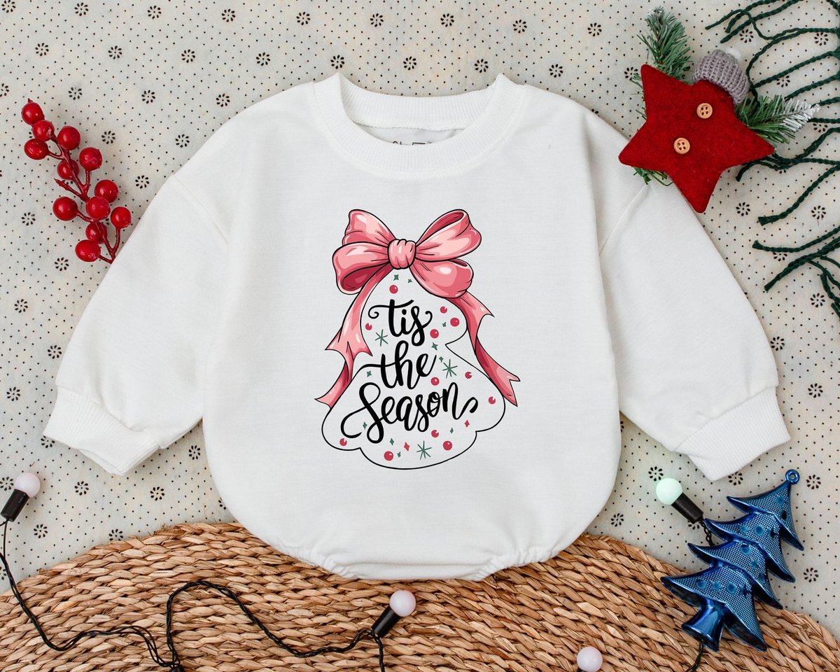 Tis The Season Romper First Christmas Clothes Toddler Sweatshirt Baby Shower Gift Bubble Romper Vint