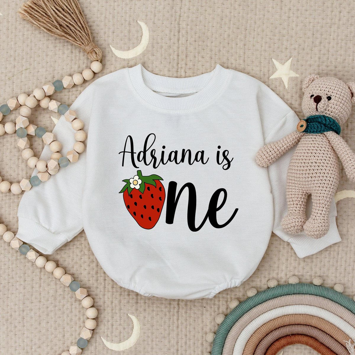 Strawberry One Baby Romper Berry First Birthday Romper Strawberry Baby OutfitPersonalized 1st Birthd