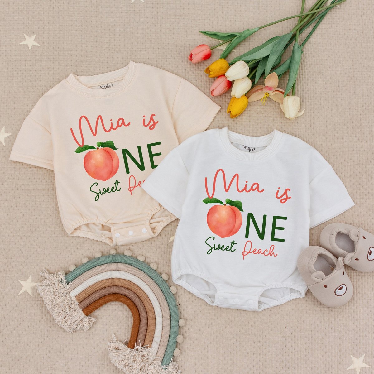 Sweet One Little Peach Girl Baby Romper Peach Birthday Peach Baby Shower Peach 1st Birthday Sweet Li