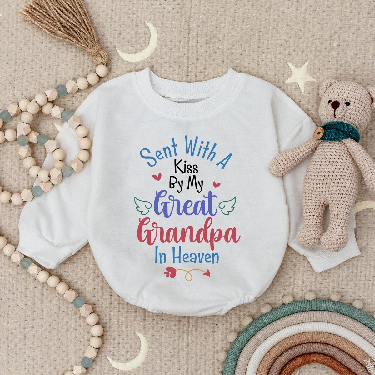 Sent With A Kiss By My Great Grandpa In Heaven Baby Bodysuit In Memory Of Custom Baby Shower Gift Gr