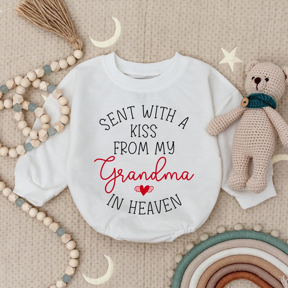 Sent With A Kiss From My Grandma In Heaven Baby Bodysuit Custom Baby Romper Baby Shower Gift Guardia
