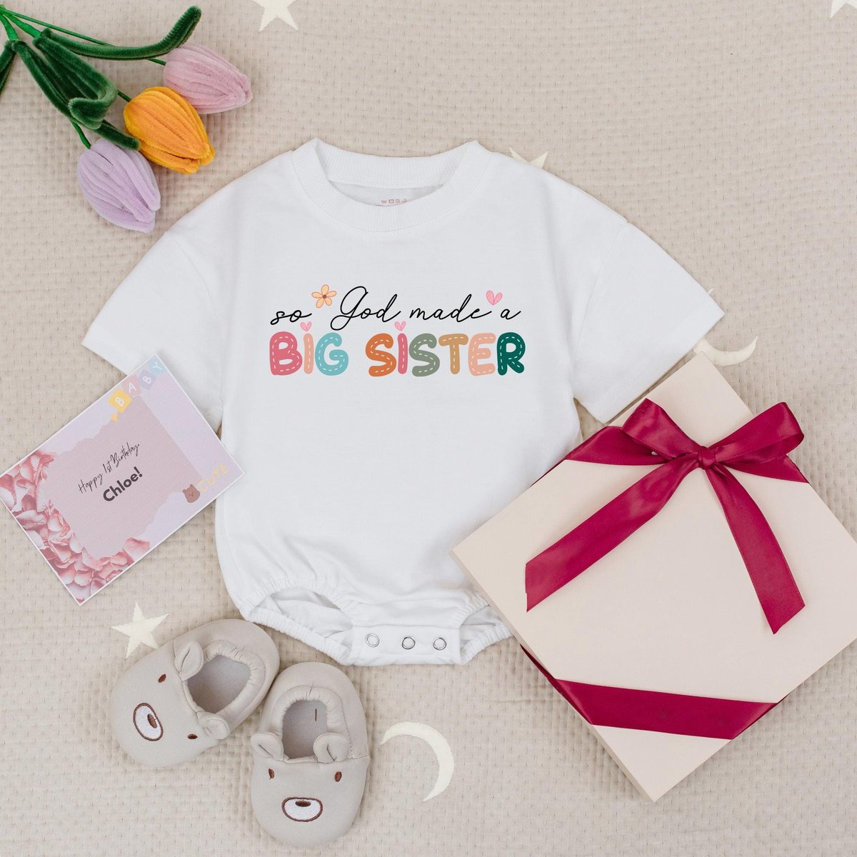 So God Made A Big Sister Baby Romper Baby Announcement Big Sister Gift Pregnancy Reveal Cute Vintage