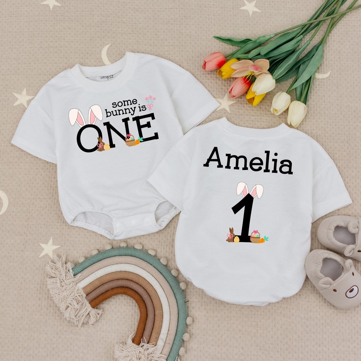 Some Bunny is One Bodysuit for Birthday Girl Baby Romper 1st Birthday Babysuit Easter Spring Birthda