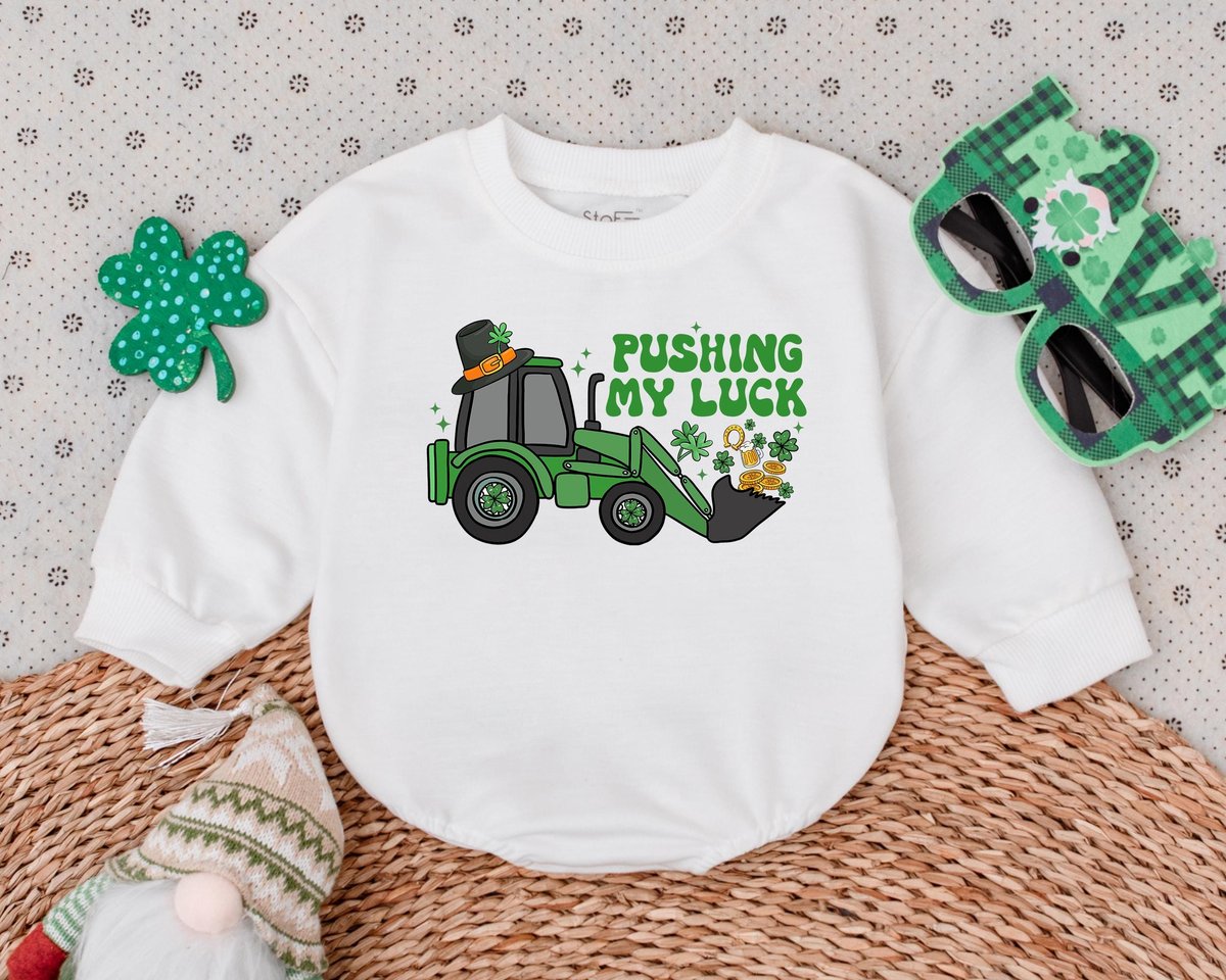 Pushing My Luck Romper My First St Patrick’s Day Outfits Clover Patrick Baby Bodysuit Boys Girls Cl