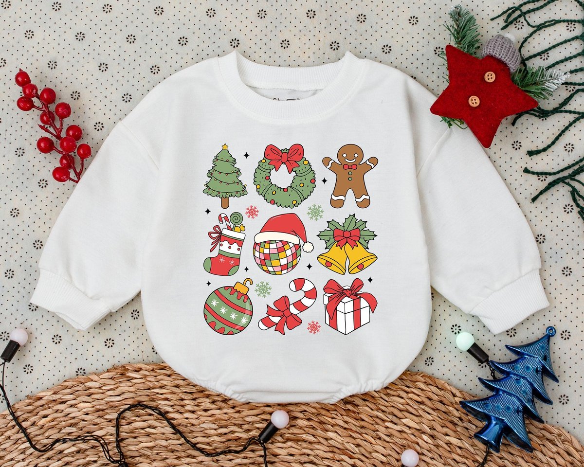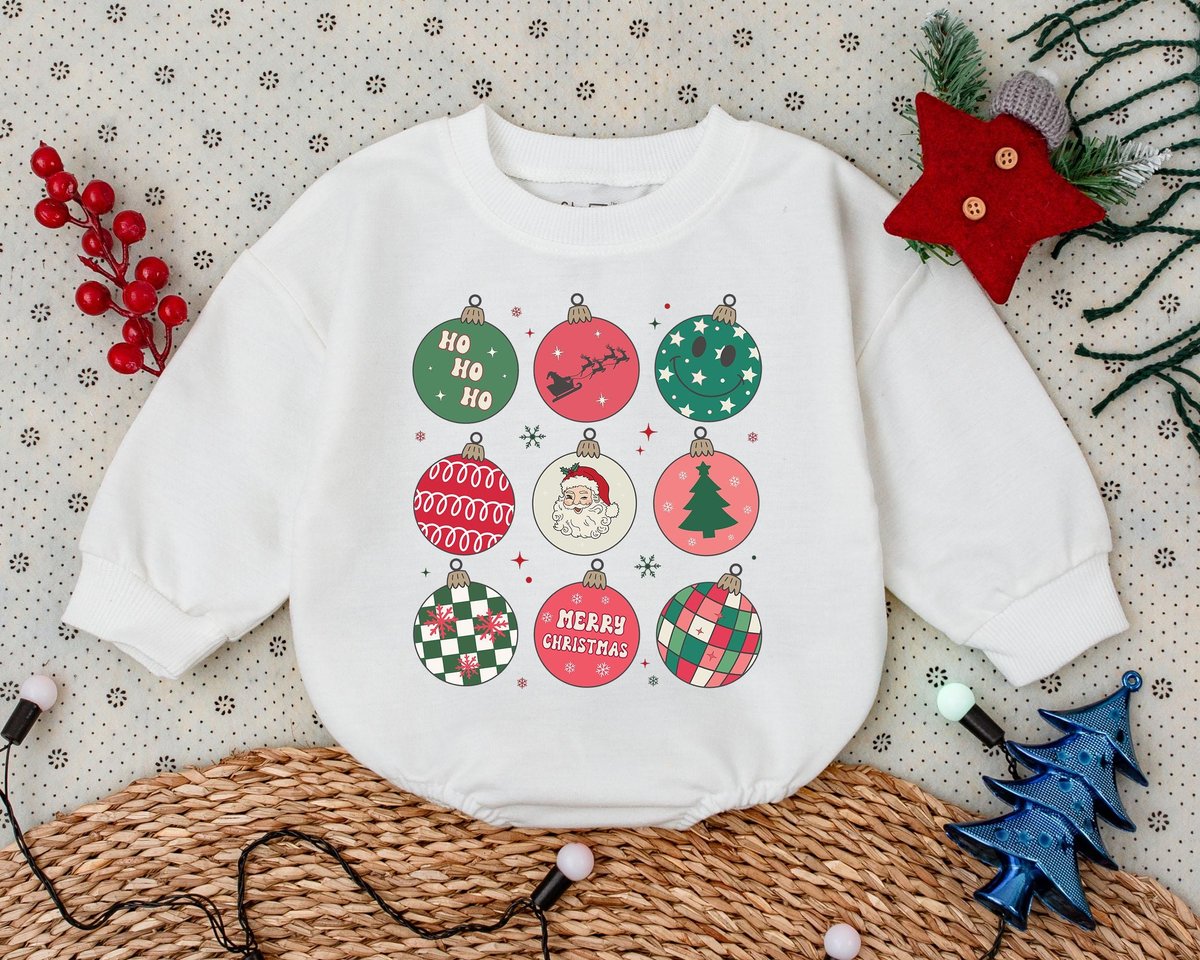 Retro Christmas Romper First Christmas Clothes Toddler Sweatshirt Baby Shower Gift Bubble Romper Vin