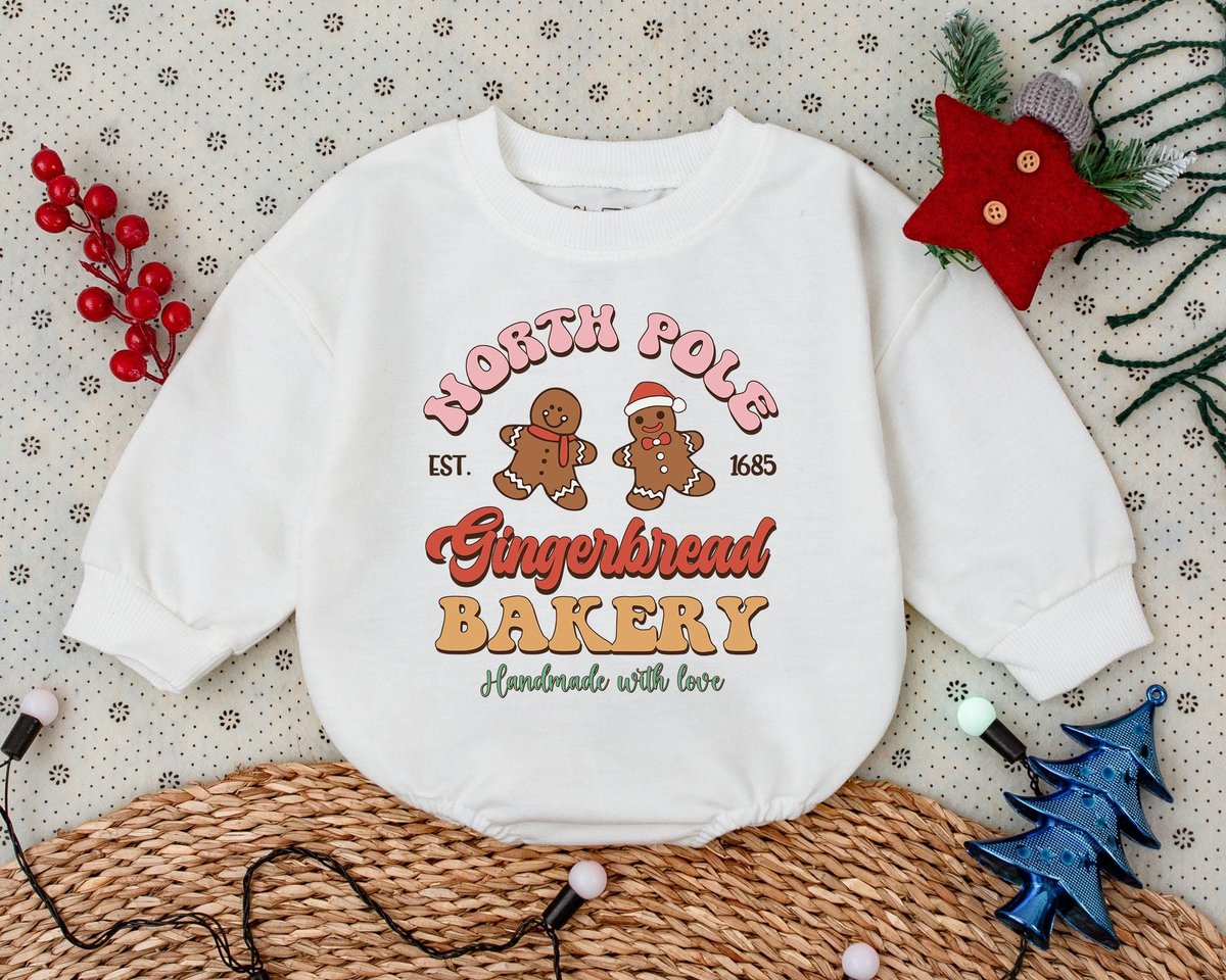 Retro Christmas Romper First Christmas Clothes North Pole Bakery Toddler Sweatshirt Baby Shower Gift