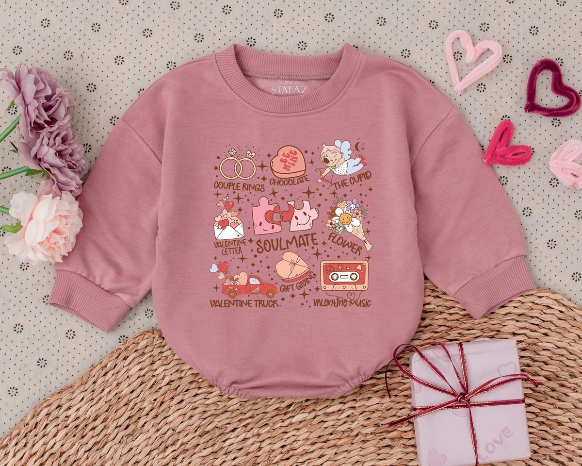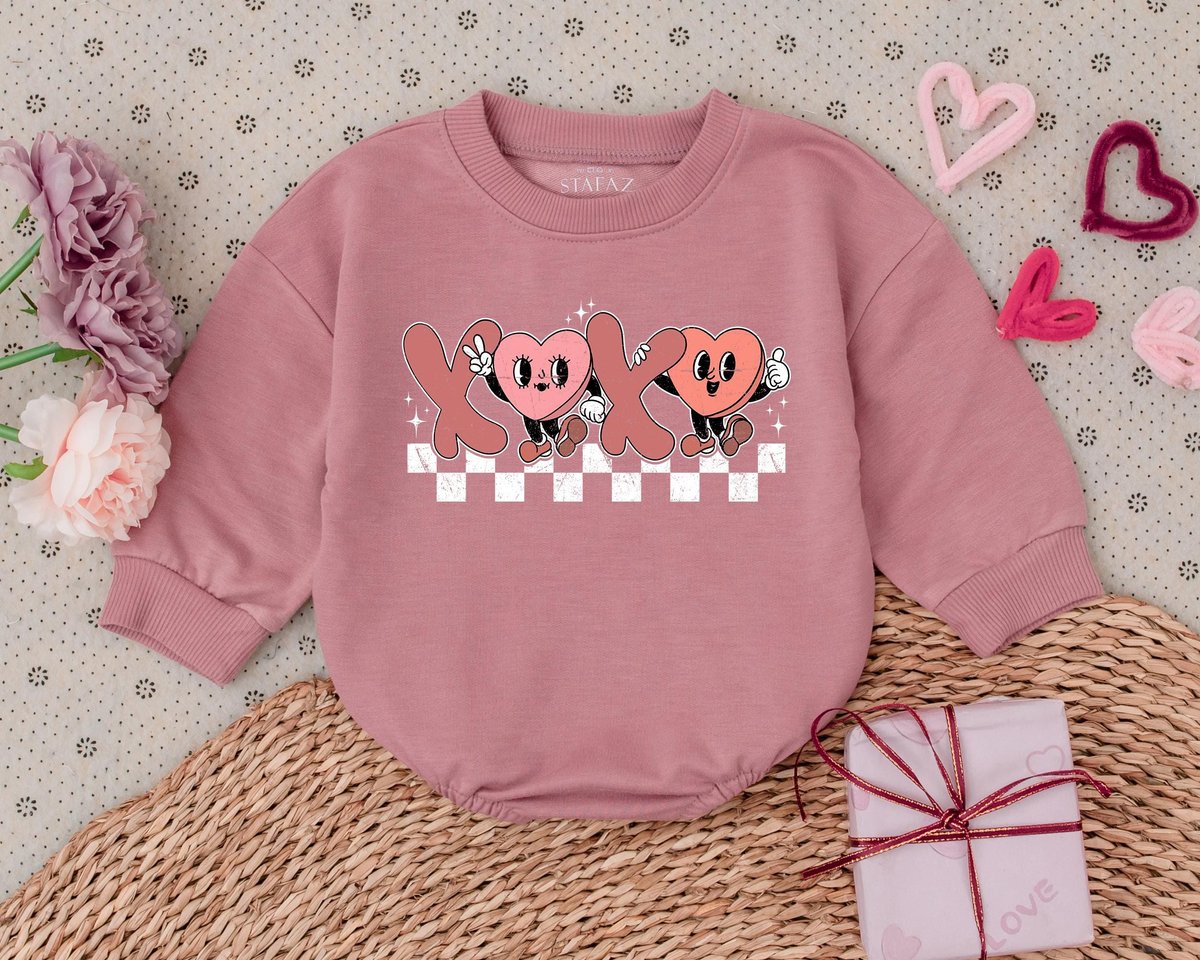 Retro Kids Valentines Day Romper My 1st Valentines Day Outfits Toddler Sweatshirt Baby Bodysuit Baby