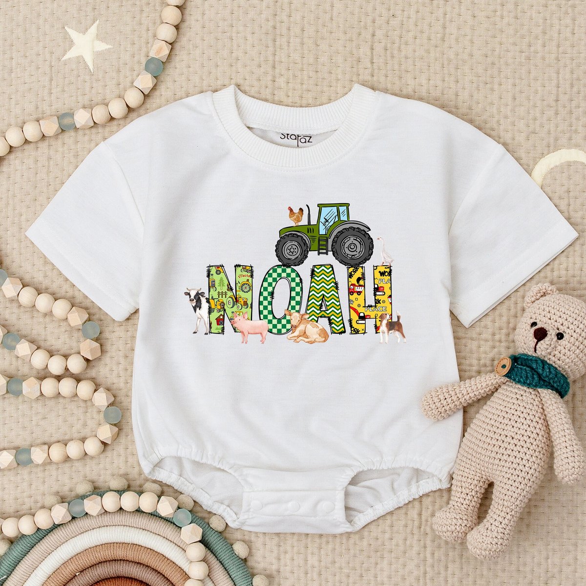 Personalized Tractor Name Baby Romper Tractor Birthday Outfit Baby Boy Birthday Boy Farm Bodysuit Bu