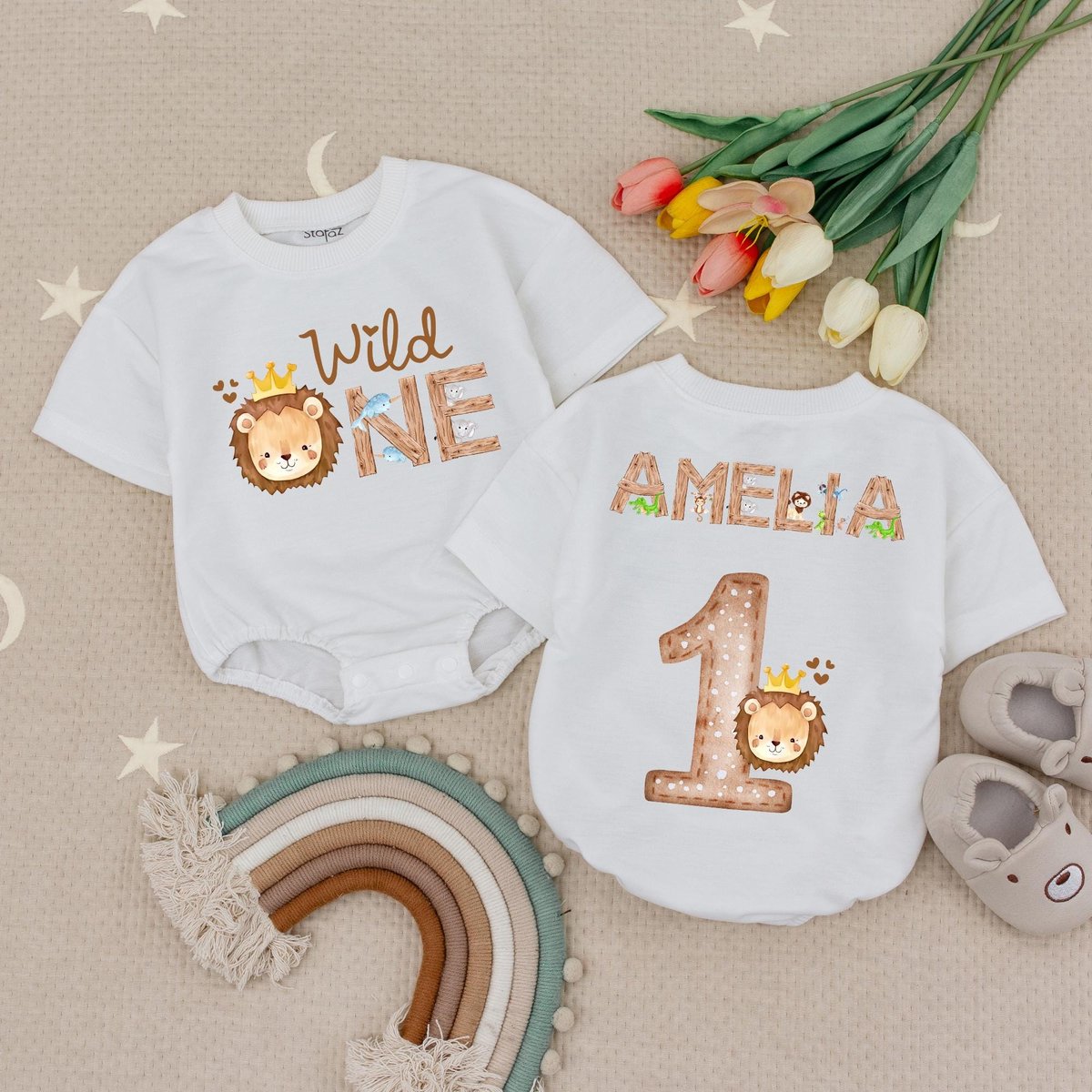 Personalized Wild One Baby Romper Safari Themed Birthday Bodysuit Cute Birthday Romper 1st Birthday