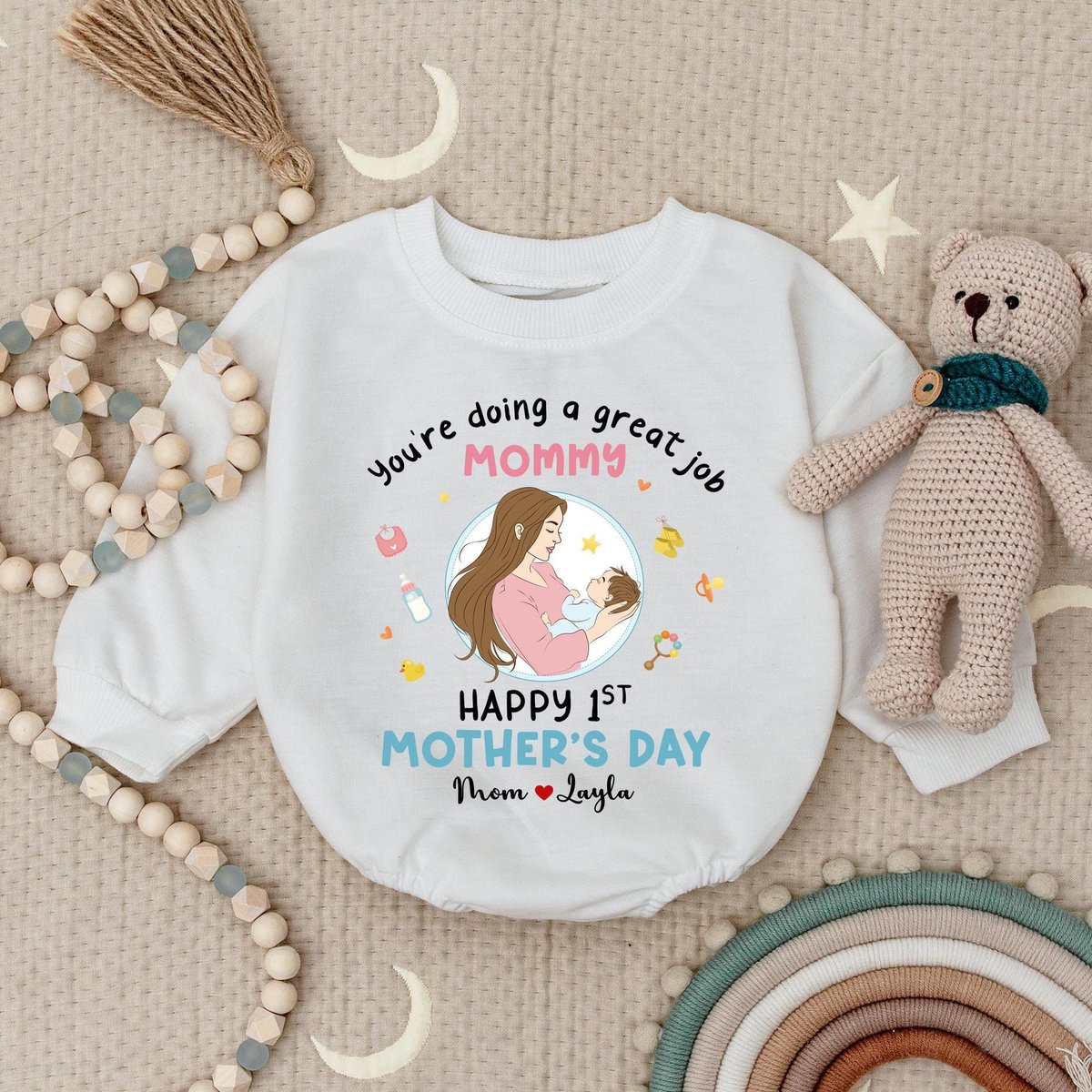 Personalized You’re Doing a Great Job Mommy Baby Romper Happy First Mothers Day 1st Mothers Day Gif