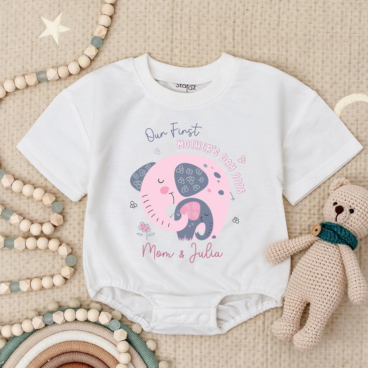 Personalized Our First Mother’s Day 2025 Elephant Baby Romper Mommy And Me Babysuit Boys Girls Moth