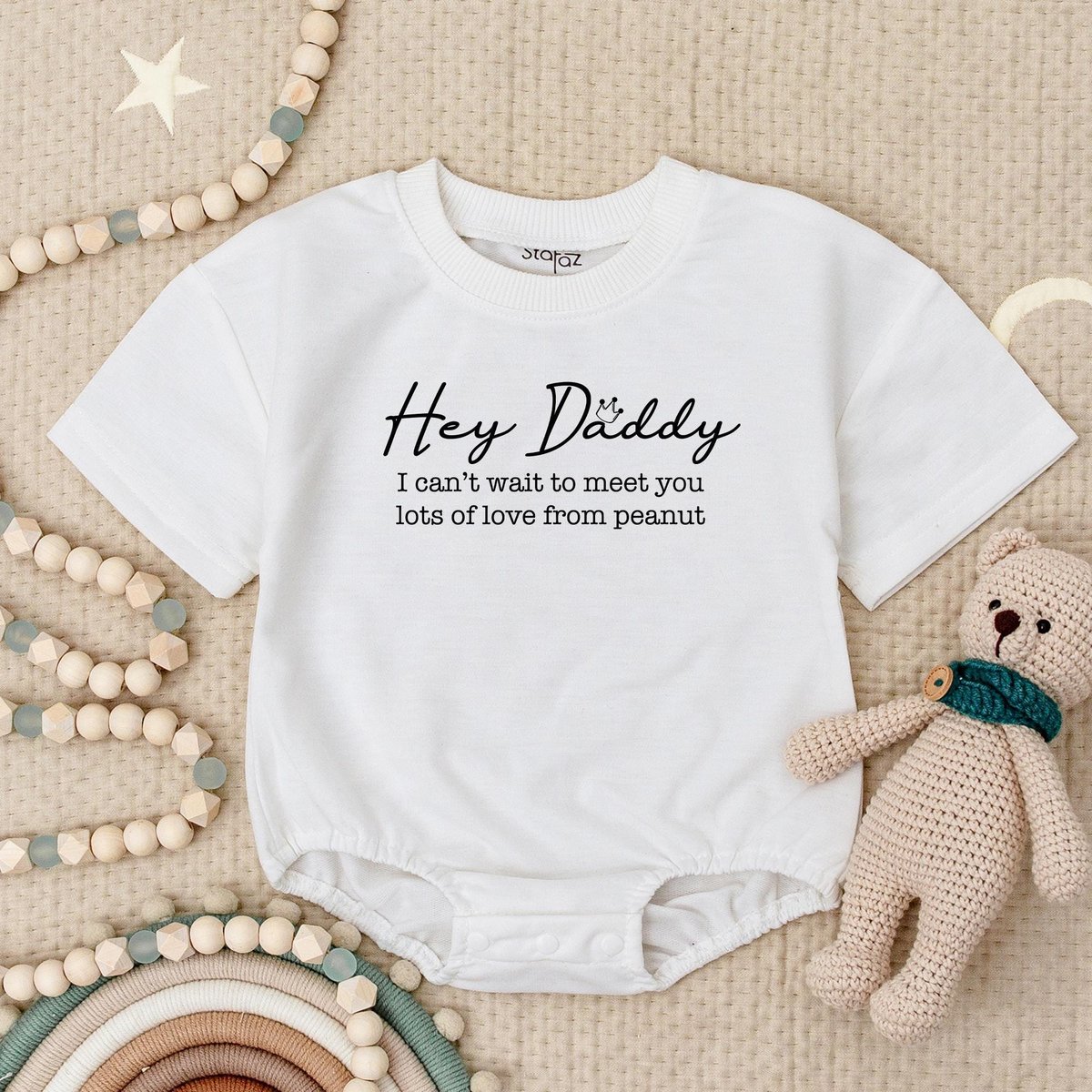 Personalized Pregnancy Announcement Sign To Daddy Baby Romper Baby Surname New Baby Due Date Reveal