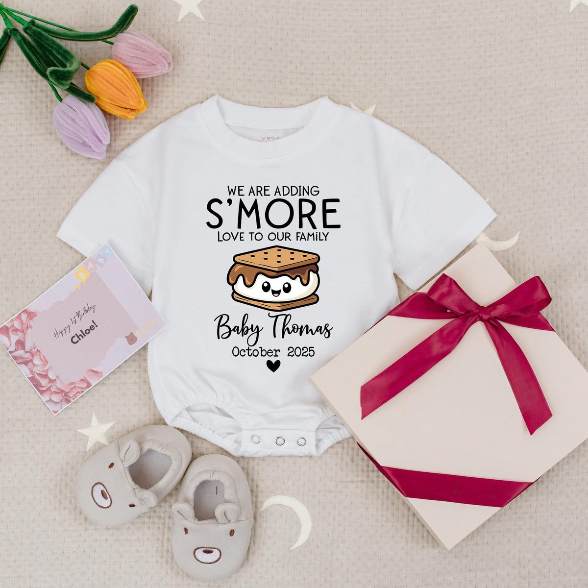 Personalized Name S’more Pregnancy Reveal Baby Romper Adding Smore Love Babysuit Sibling Pregnancy