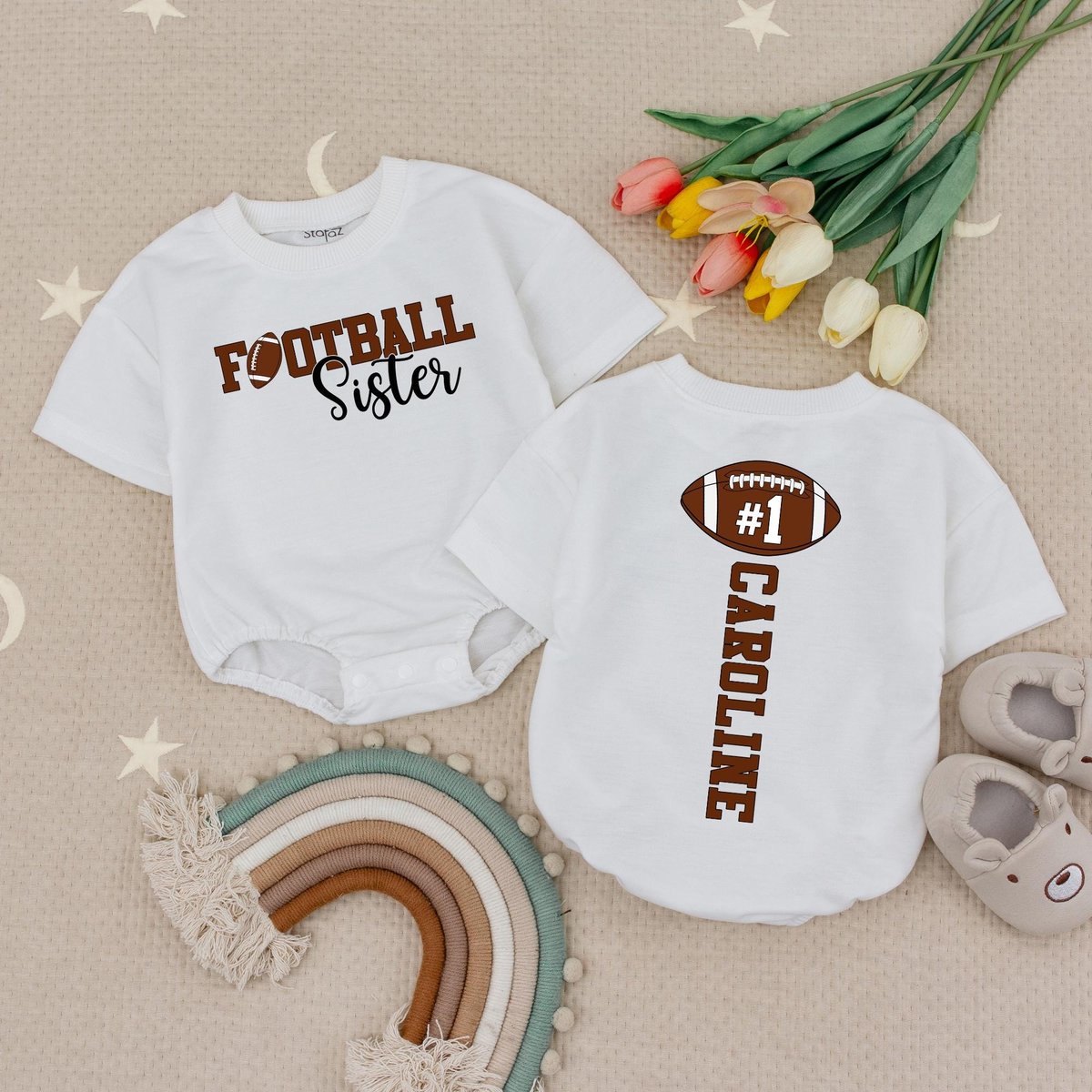 Personalized Name Sister Football Baby Bodysuit Cute Sport Sister Tee Game Day Outfit LookFootball L