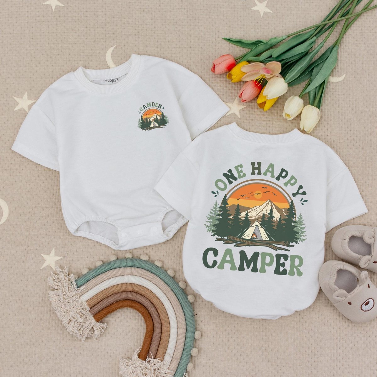 Personalized Name One Happy Camper Baby Romper First Birthday Baby Outfit Camping 1st Birthday Outfi