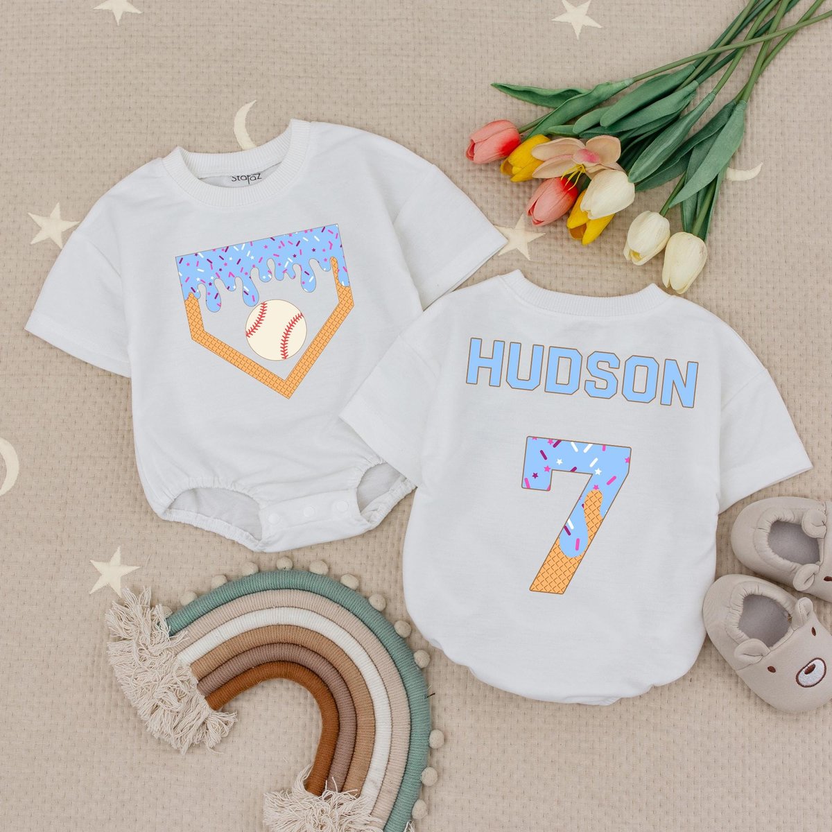 Personalized Name Kid Baseball Drip Baby Romper Custom Baseball Shirt for Boy Ice Cream Drip Bubble