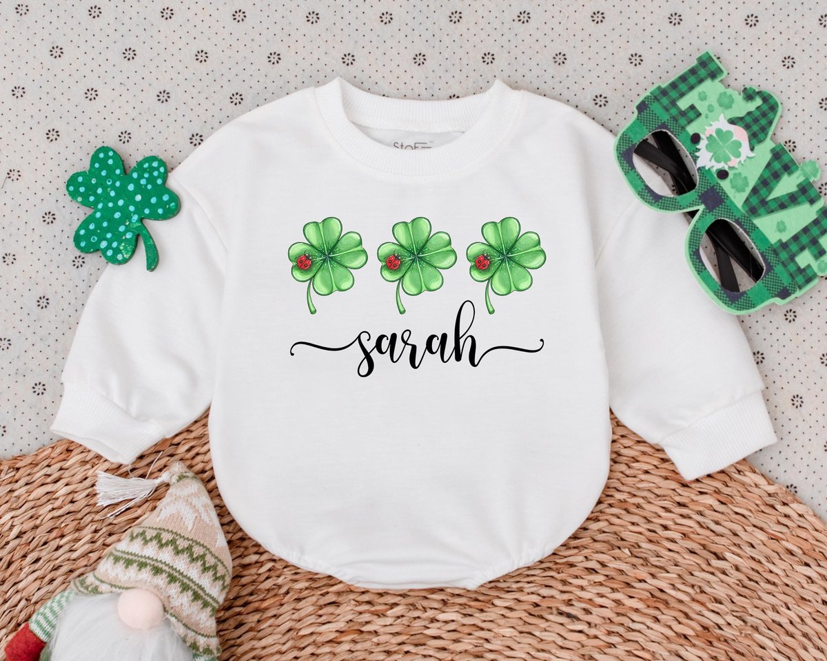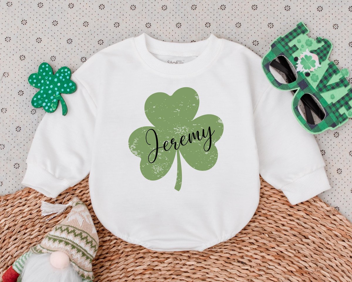 Personalized Name My 1st St Patrick’s Day Outfits Retro Clover Patrick Baby Bodysuit Baby Boys Girl