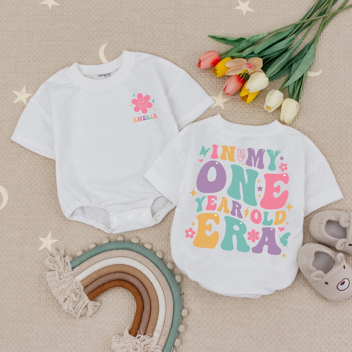 Personalized Name In My One Year Old Era Baby Romper Custom 1st Birthday Outfit Cute Baby Bodysuit F