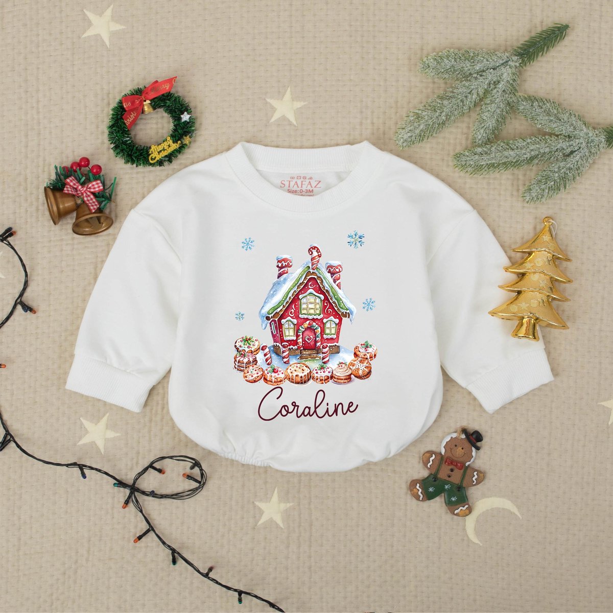 Personalized Name Gingerbread House Christmas Romper Sweater Baby Shower Newborn Outfits First Baby