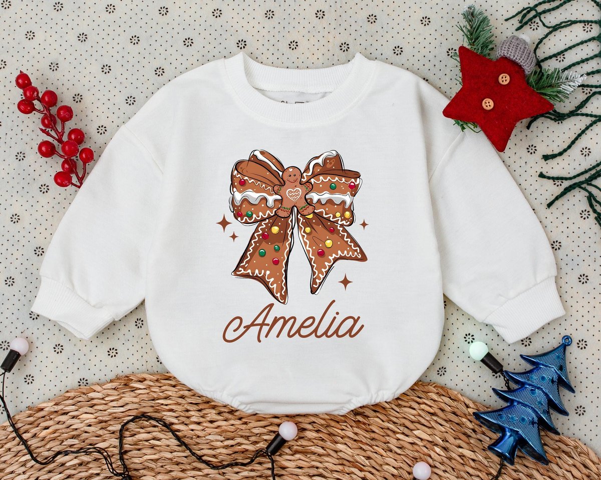 Personalized Name Christmas Bow Baby Romper Gingerbread Bow Baby Romper Girly Christmas Bow Baby Bod