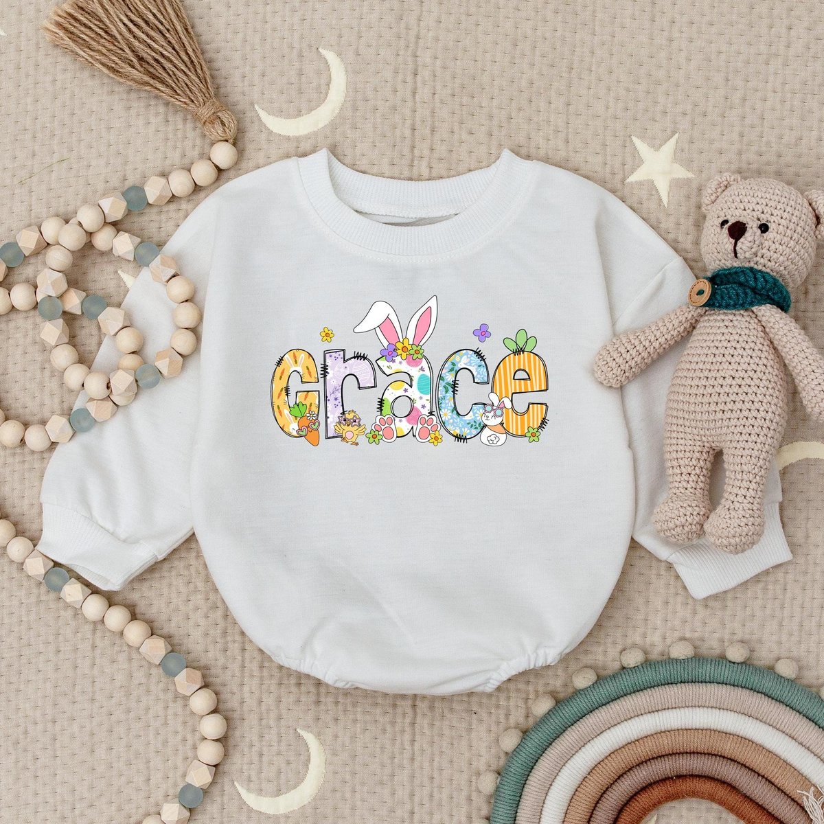 Personalized Name Easter Bodysuit For Baby Custom Easter Baby Boy Girl Outfit First Easter Baby Romp