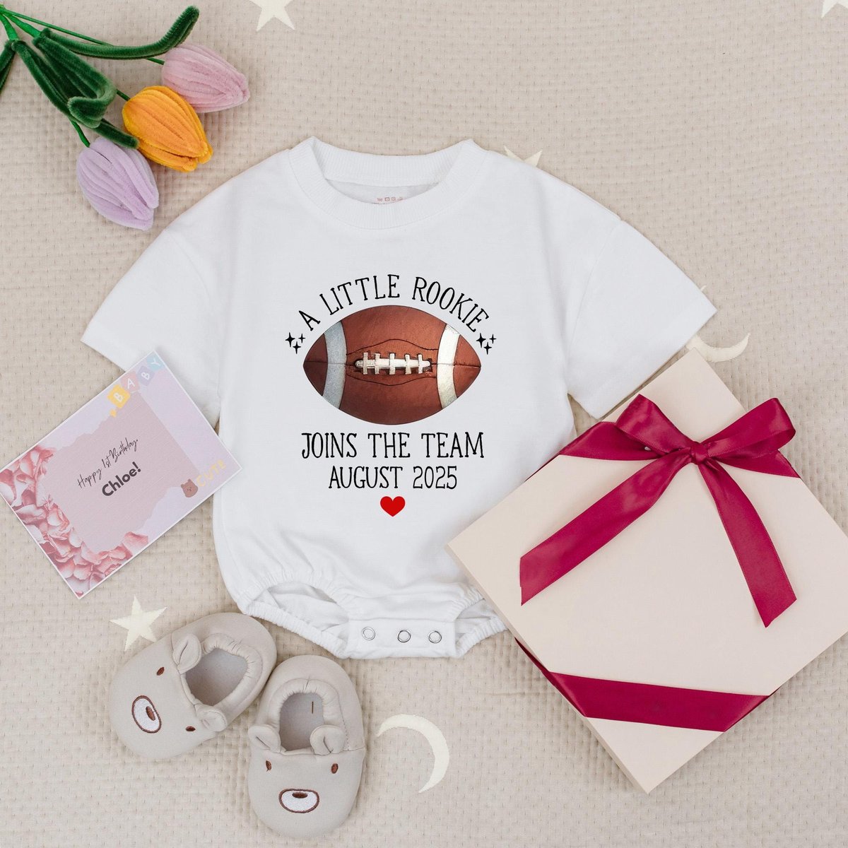 Personalized Date A Little Rookie Joins The Team Football Baby Romper Football Pregnancy Announcemen