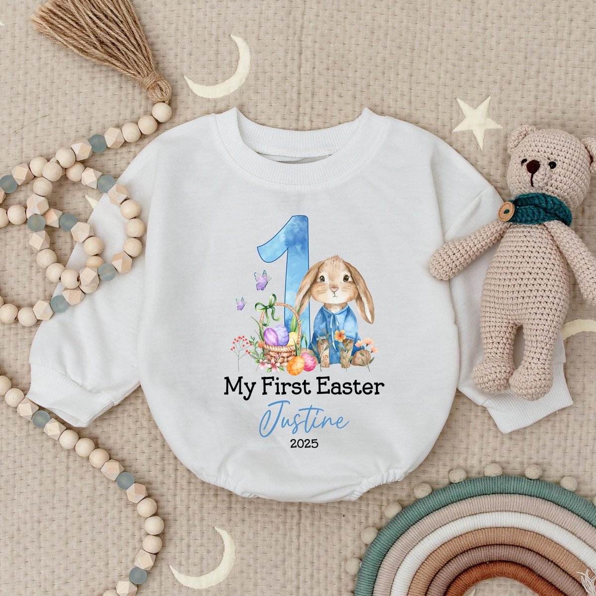 Personalized Easter Bunny Name Baby Romper My First Easter Baby Romper Personalized 1st Easter Baby