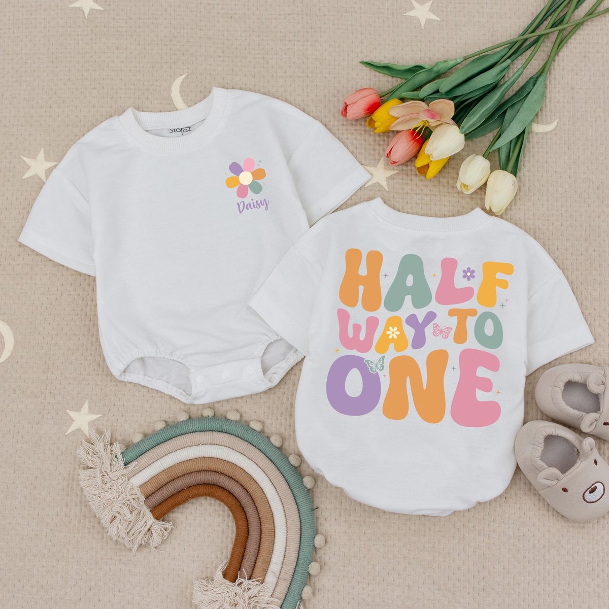 Personalized Half Way To One Baby Romper Half Birthday Romper Newborn For Baby 12 Way To One Birthda