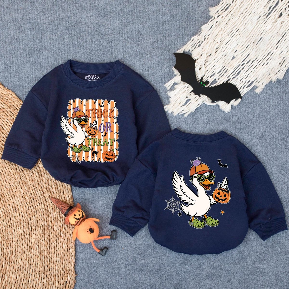 Boy Halloween Goose Trick or Treat Long Sleeve Bubble Romper Baby Boy First Halloween Outfit Toddler 432