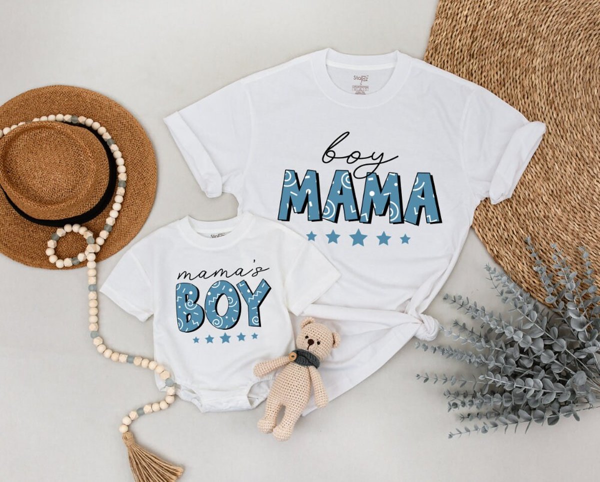 Boy Mama and Mamas Boy Matching Outfit Custom Family Baby Shower Gift Mama Shirt Son and Mom Matchin 171