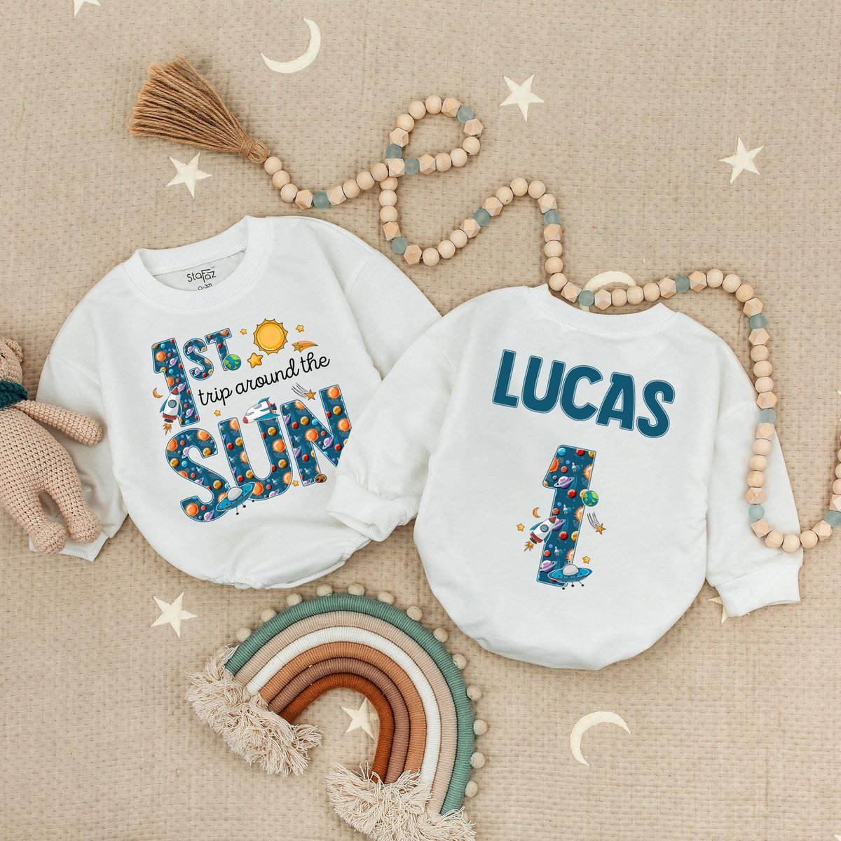 Outer Space 1ST Trip Around The Sun Baby Romper First Trip Around Space Babysuit Space Birthday 1st