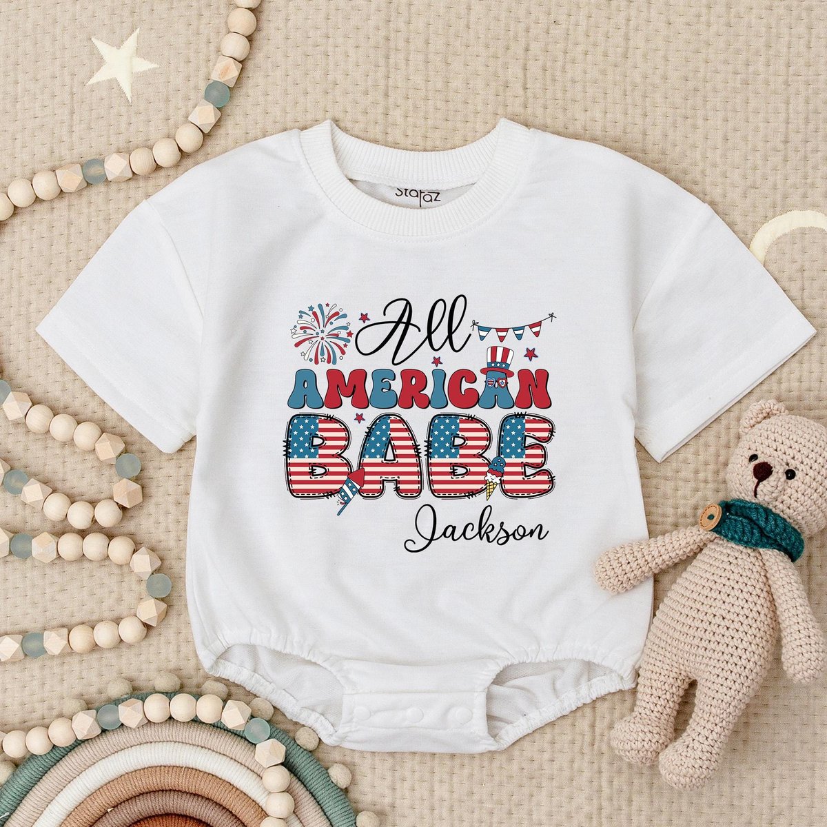 Personalized All American Babe Baby Romper 4th of July Kids Bodysuit Patriotic Baby Bodysuit4Th Of J