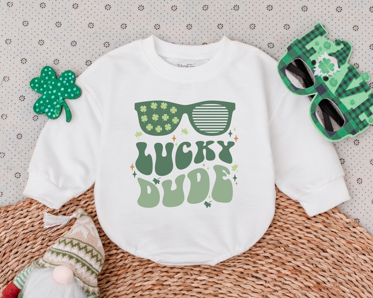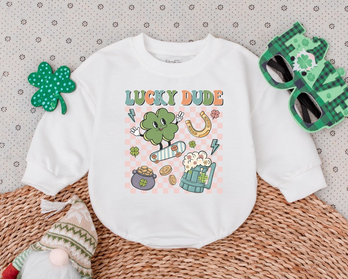 Lucky Dude Bubble Romper My First St Patrick’s Day Outfits Clover Patrick Baby Bodysuit Irish Baby