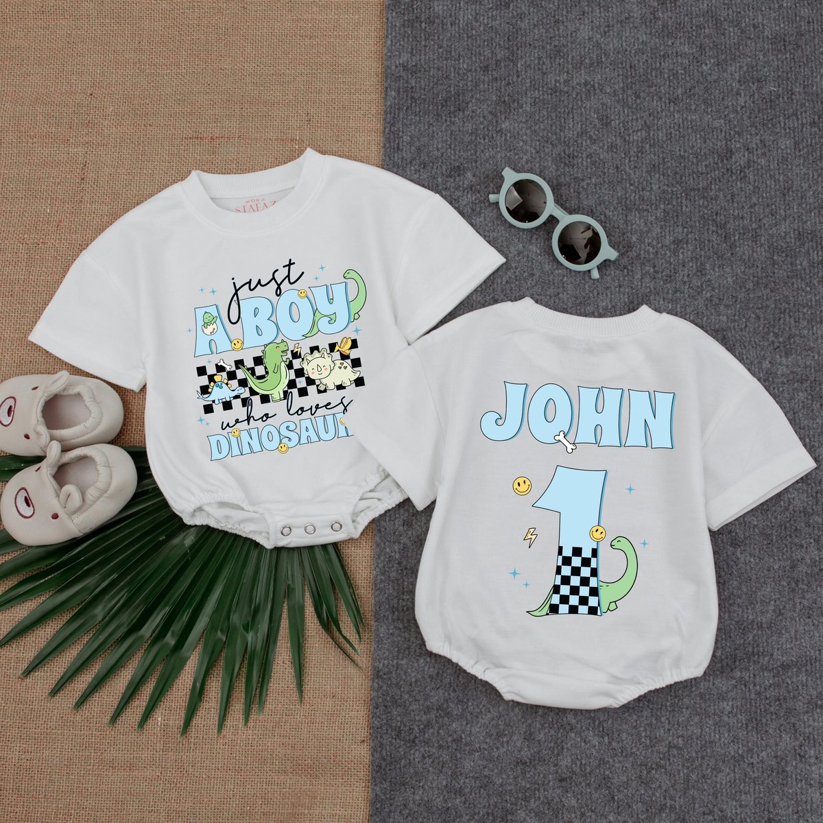 Just A Boy Who Loves Dinosaurs First Birthday Outfit Dino Bubble Romper Toddler Boy 1st Birthday Clo 430