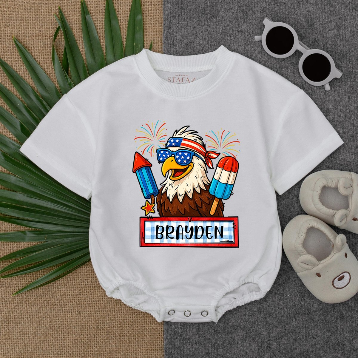 Boys Patriotic Trio Baby Romper Fourth Of July Name Romper Personalized Summer Baby Outfit Custom US 429