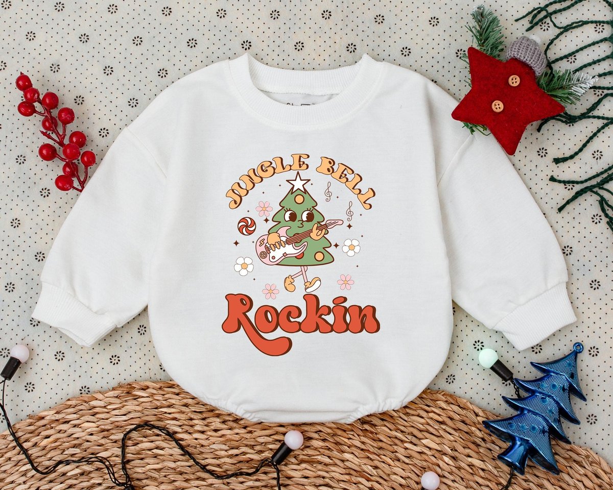 Jingle Bell Rockin Romper First Christmas Clothes Christmas Tree Toddler Sweatshirt Baby Shower Gift