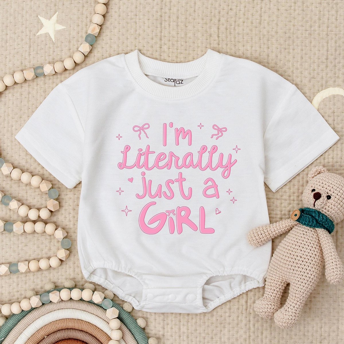 I’m Literally Just A Girl Romper Baby Bodysuit Baby Shower Gift Cute Bow Baby Girl Gender Reveal De