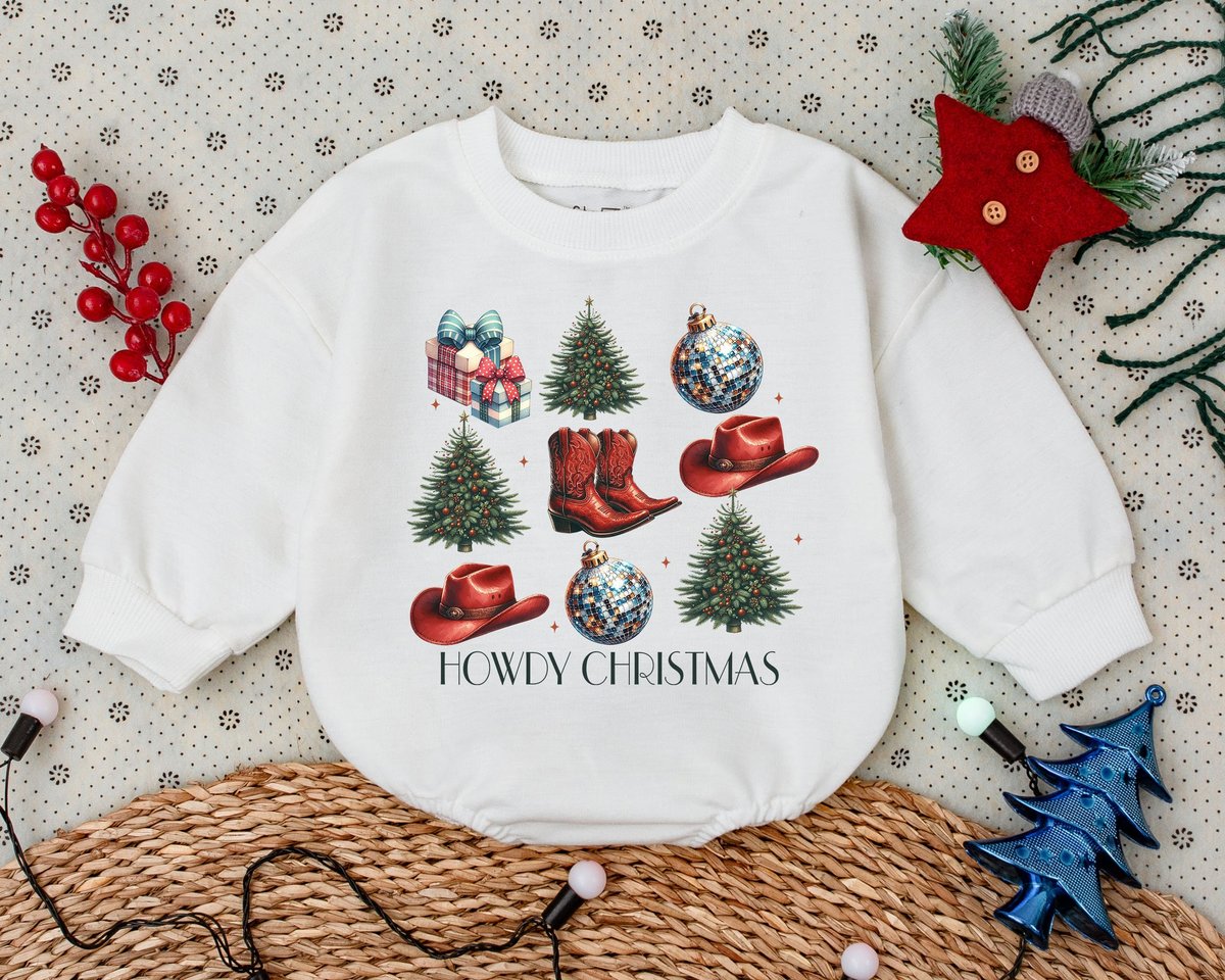Howdy Christmas Baby Romper First Christmas Clothes Toddler Sweatshirt Baby Shower Gift Western Chri