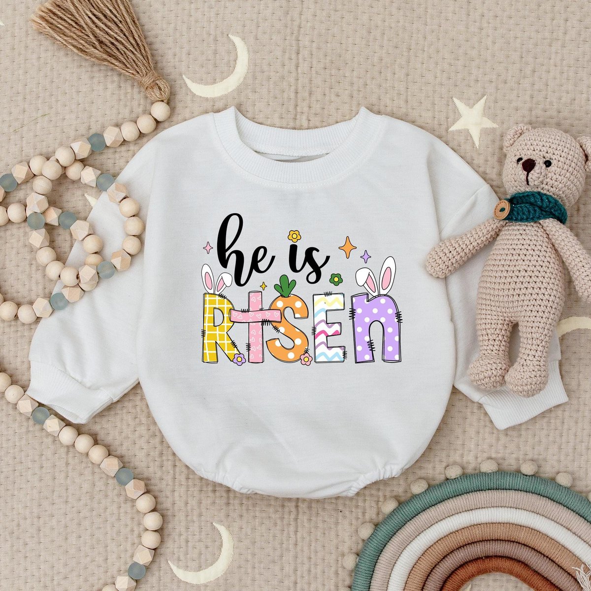 He Is Risen Baby Romper Christian religious 1st Easter Day Baby Outfit Christian Easter Baby Bodysui