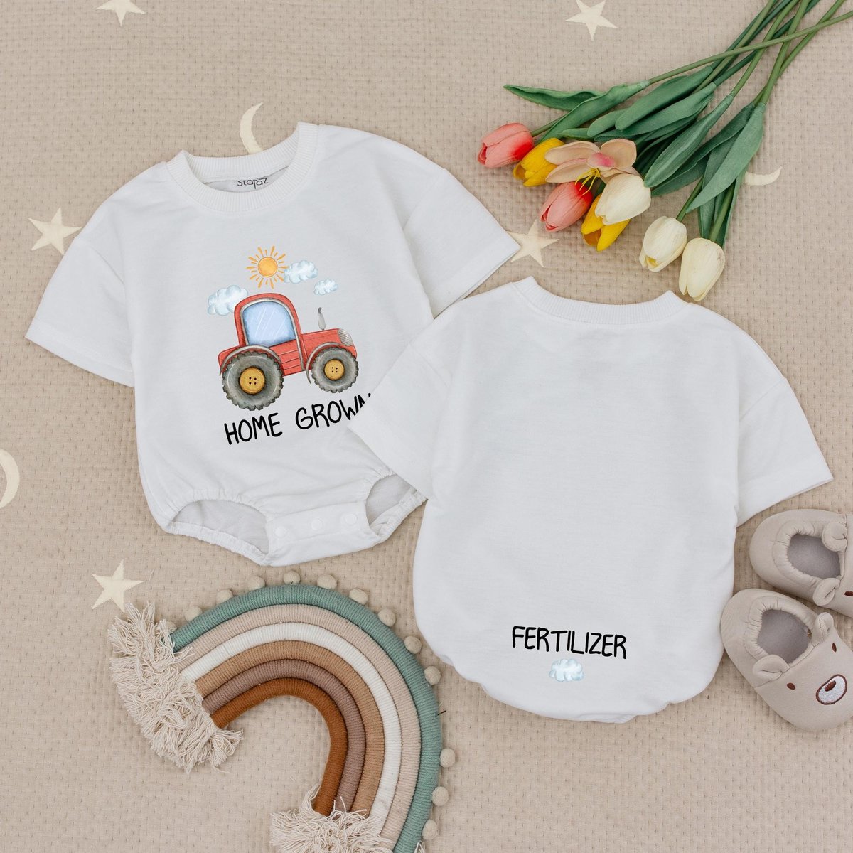 Home Grown Kids Baby Romper Funny Baby Bubble Romper Baby Shower Gift Farm Life Tractor Gift Pregnan