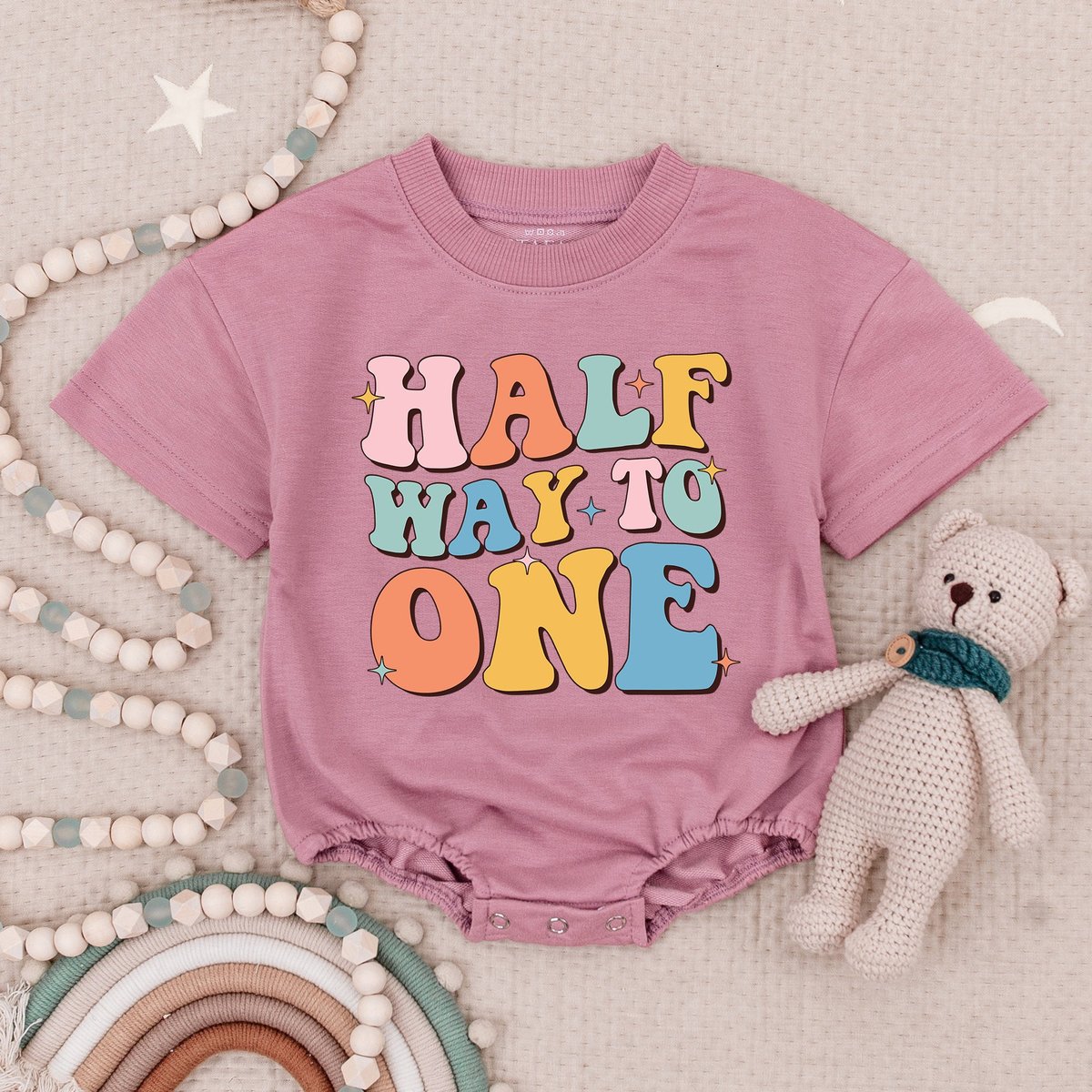 Half Way To One Birthday Romper Birthday Bodysuit 12 Way To One Birthday Outfit Birthday Gift For Gi