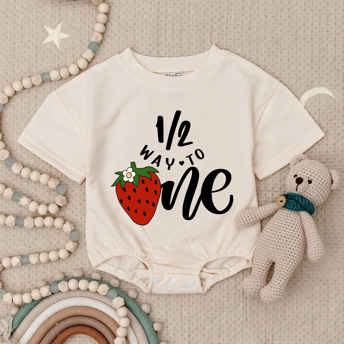 Half Way To One Strawberry Baby Romper Berry Birthday Bubble Romper Half Birthday Baby Girl 12 Birth