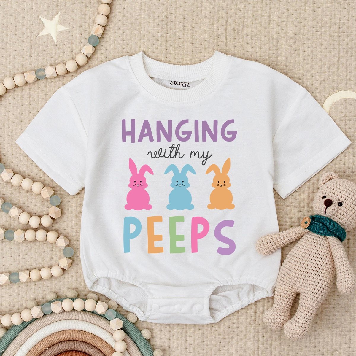 Hanging With My Peeps Baby Romper Easter Bunny Baby Bodysuit Cute Bunny Easter Baby Clothes Newborn